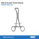 Ball & Socket Towel Clamps are used to secure towels to the drape in a surgical procedure. Ball & Socket Clamps are non-perforating, one jaw has a ball while another has a socket, the tips can secure the drape tightly without penetration.